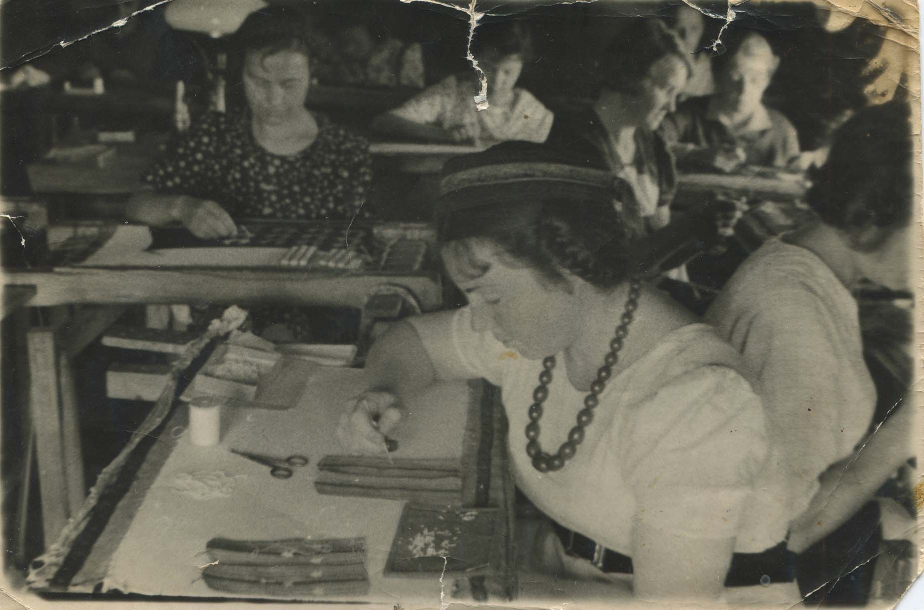 Зося Каспирович (мама) за работой – вышивает канителью форму для военных. 15 июня 1943г.